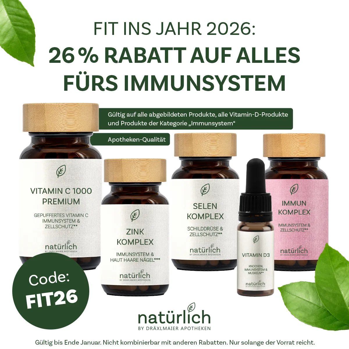 Seit über 45 Jahren stehen die Dräxlmaier Apotheken für höchste Standards in Beratung und Produktqualität. Auch bei unserer Eigenmarke natürlich by Dräxlmaier Apotheken setzen wir auf geprüfte Reinheit, nachhaltige Rohstoffe und maximale Bioverfügbarkeit – ganz ohne unnötige Zusätze. Vertrauen Sie auf Erfahrung, Verantwortung und Apothekerqualität aus Straubing.